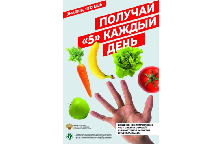 Увеличить потребление фруктов и овощей (не менее 400–500 гр. в день – 5 порций);